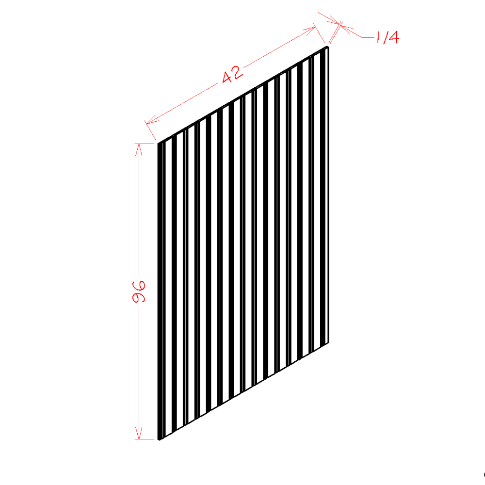 Panel Finished Veneer 42" X 96":  42" Width X 96" Height X 1/4" Depth.